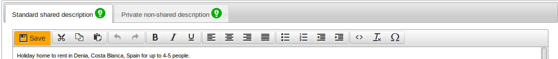 Just navigate to the Accommodation Description Editor and now you will find two tabs. The first one contains the standard shared description that you are used to edit. The second tab, “Private non-shared description”, allows you to edit the private descriptions of the accommodation.